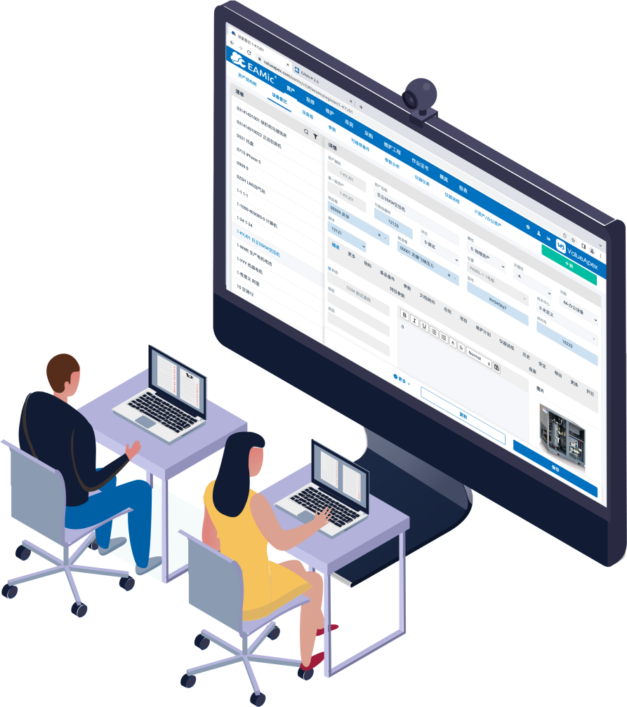 EAMic®资产管理系统记录并管理与企业设备资产相关的每一条数据。包括设备的档案信息(设备台账、设备制造商、设备型号、设备序列号、物料清单等)以及维修、维护等历史记录和运行数据(服务开始时间、供应商合同等)。EAMic®系统为维护团队提供从设备履历、设备维护、设备维修、隐患排查、设备保养、备品备件库存管理等全方位管理服务。您可以通过EAMic®系统电脑端和移动APP端随时查找设备资产相关信息和维护历史记录,随时随地,高效快捷。